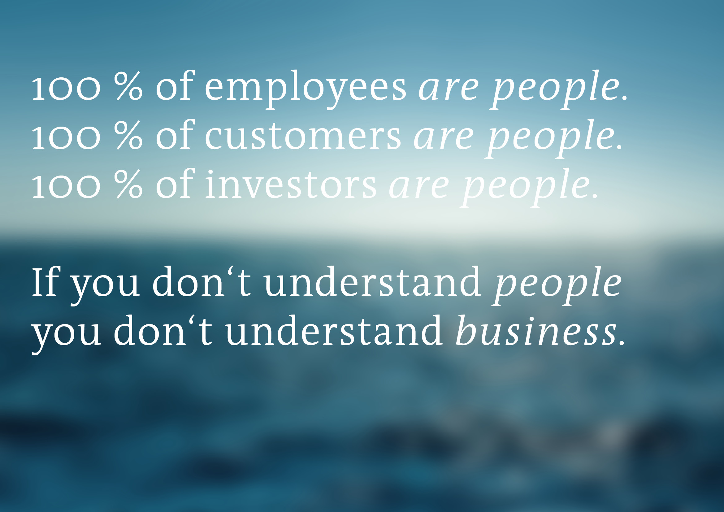 Gute Mitarbeiter wollen nicht auf Arbeitskräfte reduziert oder als Kostenfaktor gesehen werden, sondern als Menschen. Als Menschen in einer Welt, die vor globalen Herausforderungen steht. Billiger sind junge Spitzenkräfte nicht zu haben. Deshalb: Fokus Mensch.