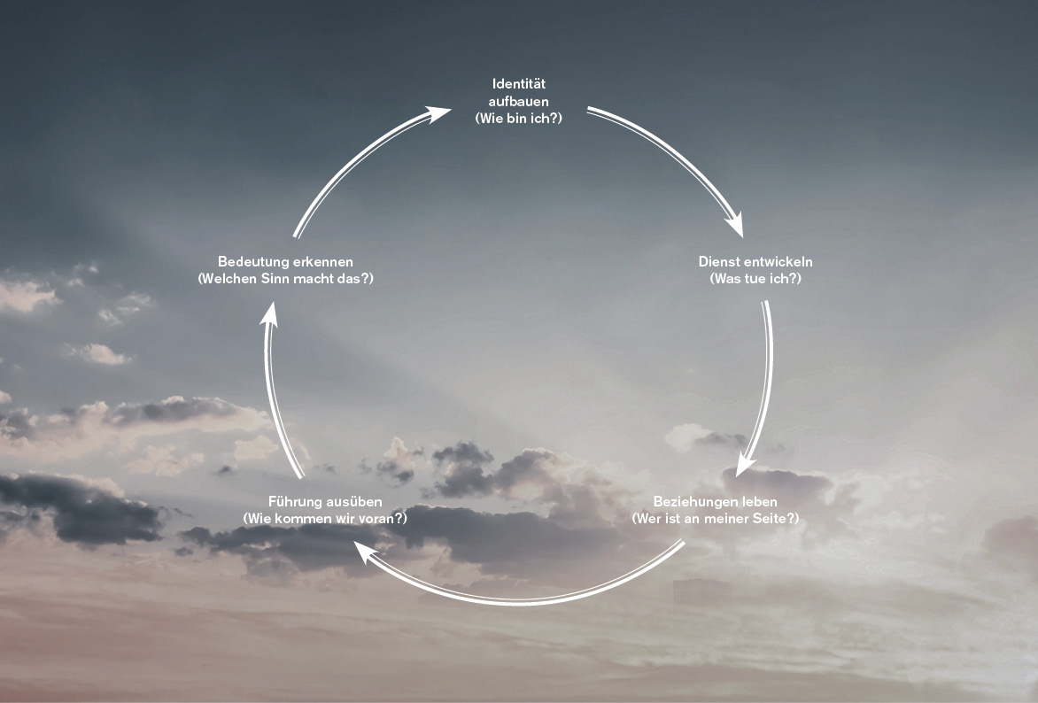 Die Entwicklung von Führungskräften verläuft meist in einem Zirkel. Klarheit in der Identität führt zu einem klaren Profil. Wer ein klares Profil hat, zieht auch die passenden Leute an und entwickelt die angemessene Art der Führung. Doch das ist noch nicht alles. Wo auch die Menschen und das gesellschaftliche Umfeld im Blick sind, bekommt die Organisation einen sozialen Mehrwert. Diesen Mehrwert zu generieren, kann als persönlicher Auftrag begriffen werden – und wird so wiederum zu einem Baustein der eigenen Identität. Auf diese Weise entsteht eine „Glücksspirale“, die sinnhaltig und ertragreich ist.